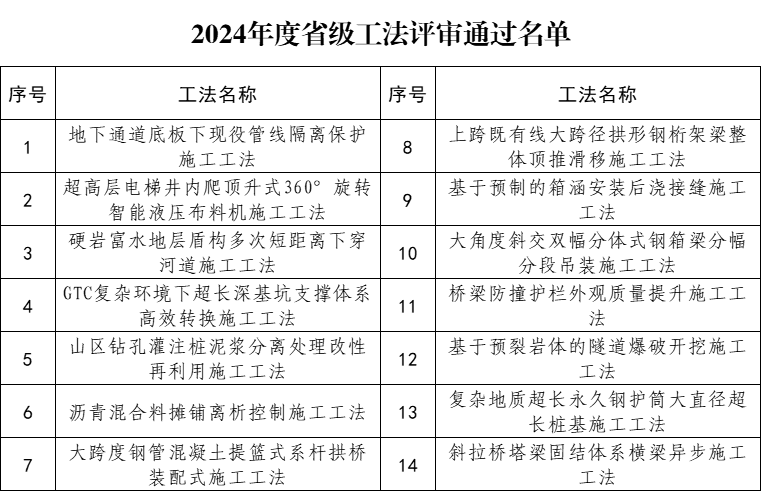 卓越創(chuàng)新 | 公司14項施工工法獲評省級工法