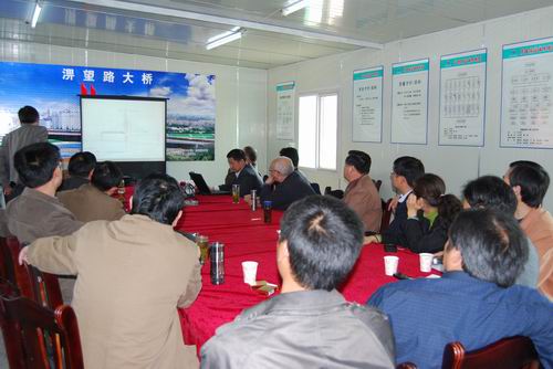 下午,觀摩團一行又驅車來到了金桃橋項目。參觀了現(xiàn)場后,在金寨縣賓館會議室觀摩團一行聽取了項目經(jīng)理劉曉晗的匯報。隨后各單位技術負責人就項目的箱拱吊裝施工等關鍵技術作了討論和交流。鄭總對該橋目前進展情況表示滿意,并做了總結講話。同時對項目部積極探索和鉆研技術難點的精神表示贊賞。并對公司的質量技術管理工作提出要求,要求格式進一步結合深入學習實踐科學發(fā)展觀,繼續(xù)開展技術的開發(fā)挖掘,進行技術的集成創(chuàng)新,研究、提煉項目工法和專利,為集團公司技術創(chuàng)新多做工作,以增強集團公司的核心競爭力。