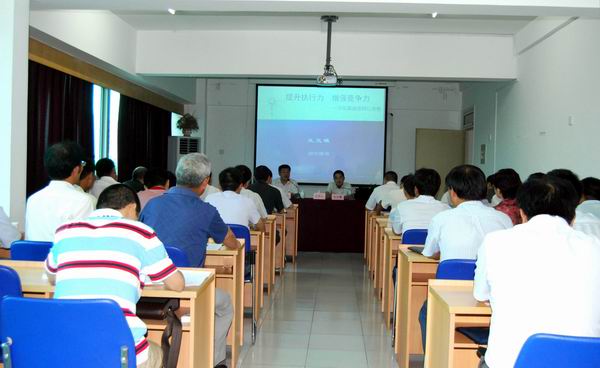 王總先從執(zhí)行力的概念出發(fā),深入淺出地給大家講解了執(zhí)行力的基本理論,并從領(lǐng)導(dǎo)層的執(zhí)行力到中層干部的執(zhí)行力,從團隊精神到個人責(zé)任心,將有執(zhí)行力的領(lǐng)導(dǎo)特點和個體特點逐一進行了深入地分析。整個講座過程,王總客觀的擺事實,幽默風(fēng)趣的講道理,把執(zhí)行力與企業(yè)競爭力的關(guān)系分析的十分透徹,贏得了與會者的陣陣掌聲。