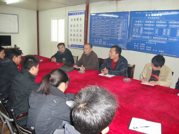 28日上午,彭總和丁總到了項(xiàng)目部后首先對(duì)鄰近的橋梁工區(qū)進(jìn)行了解,在看到大橋4號(hào)主墩即將全面封頂、5號(hào)主墩澆筑高度超過一半,其他引橋墩柱都在緊張施工后,彭總對(duì)項(xiàng)目部提出了表揚(yáng),對(duì)目前和即將涉及到的安全、質(zhì)量、進(jìn)度等問題做了詳細(xì)的技術(shù)指導(dǎo)和規(guī)范要求;同時(shí)要求項(xiàng)目部不但要干好實(shí)事還應(yīng)該做好宣傳,要把取得的成績(jī)傳到公司,讓全公司一同分享喜悅。稍后彭總一行趕往隧道工區(qū),彭總對(duì)隧道工區(qū)在短短的時(shí)間內(nèi)將左幅隧道打通的成績(jī)進(jìn)行了肯定,同時(shí)對(duì)隧道因地質(zhì)問題導(dǎo)致小面積塌方做了檢查和技術(shù)指導(dǎo),并要求項(xiàng)目部把隧道防護(hù)工作做的更細(xì)致更全面。