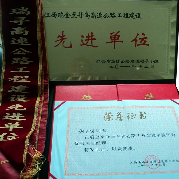 公司承建的瑞尋A7標(biāo)在公司的正確領(lǐng)導(dǎo)下,在以劉大雷同志為首的項目全體員工的共同奮斗下,經(jīng)過兩年的頑強(qiáng)拼搏、艱苦施工,終于實(shí)現(xiàn)了瑞尋高速公路的建成通車,在贛南大地描繪了一條絢麗的彩虹,書寫了一幅質(zhì)優(yōu)、安全、廉潔、環(huán)保的壯麗畫卷。瑞尋A7標(biāo)以工程質(zhì)量更優(yōu)、外觀形象更美、生態(tài)環(huán)境更佳、依法管理更嚴(yán)、安全廉潔更好為要求,以抓細(xì)節(jié)、樹精品、講程序、促規(guī)范、善創(chuàng)新、爭一流為管理理念,取得了一系列的優(yōu)異成績。在項目辦的兩次階段評比中均獲得A段第一,全線第二名的好成績,還獲得了業(yè)主頒布的“先進(jìn)單位”稱號,項目經(jīng)理劉大雷獲得了瑞尋項目“優(yōu)秀項目經(jīng)理”稱號,項目總工戴聲慶、副經(jīng)理鳳爾飛、王星輝和黃明明四人獲得了“先進(jìn)個人”稱號。