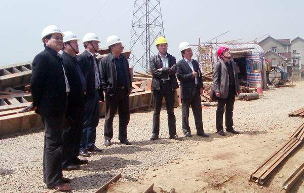 戴總一行首先來到宣貍改建L4標北山河大橋施工現(xiàn)場,對北山河橋掛籃及主橋施工進行了細致的了解,并聽取了L4標項目經(jīng)理江仲明關于工程質量與進度、安全文明施工方面的匯報。隨后,在L5標項目經(jīng)理劉冬的陪同下,戴總一行察看了L5標全線的生產(chǎn)和進度情況,對工程目前階段的重點和難點給予了建設性指導意見。