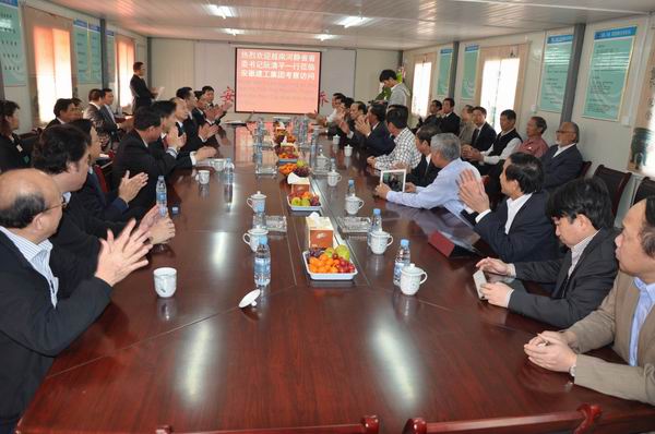 在項目施工現(xiàn)場,市政分公司副經理王明禮向考察團詳細介紹了工程情況。當考察團對該項目僅需300天就能夠完成概算6.06億元的施工任務時,表現(xiàn)出不可思議和贊嘆之情。在項目會議室,孫學軍董事長對公司總體情況進行了介紹,并逐一介紹了公司在市政、高速、橋隧、海外等各個領域的精品工程。