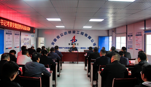 在全省上下深入學習宣傳貫徹習近平總書記考察安徽重要講話指示精神之際,按照集團黨委統(tǒng)一部署要求,結合領導班子成員黨支部工作聯(lián)系點制度,10月16日下午,公司黨委副書記、總經(jīng)理錢申春深入道路分公司壽縣新橋產(chǎn)業(yè)園道路擴展工程項目部宣講習近平總書記考察安徽重要講話指示精神。他強調(diào),要充分認識習近平總書記考察安徽重要講話指示精神的重大意義,推動學習宣傳貫徹工作走深走實,確保習近平總書記重要講話精神在項目一線得到全面貫徹落實,進而轉(zhuǎn)化為推動項目生產(chǎn)經(jīng)營管理的強大動力和生動實踐。